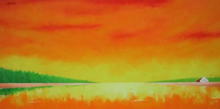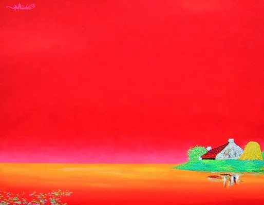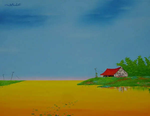 His works are a harmonious blend of solid compositional structures and the natural rhythm of lines, expressing a profound perspective on people and the sun- and wind-swept homeland of Central Vietnam. Each artwork by Vo Ta Hung is a delicate slice of memory, where familiar scenes such as fields, villages, and hometown rivers are distilled into symbolic forms.